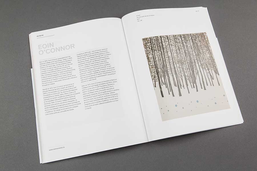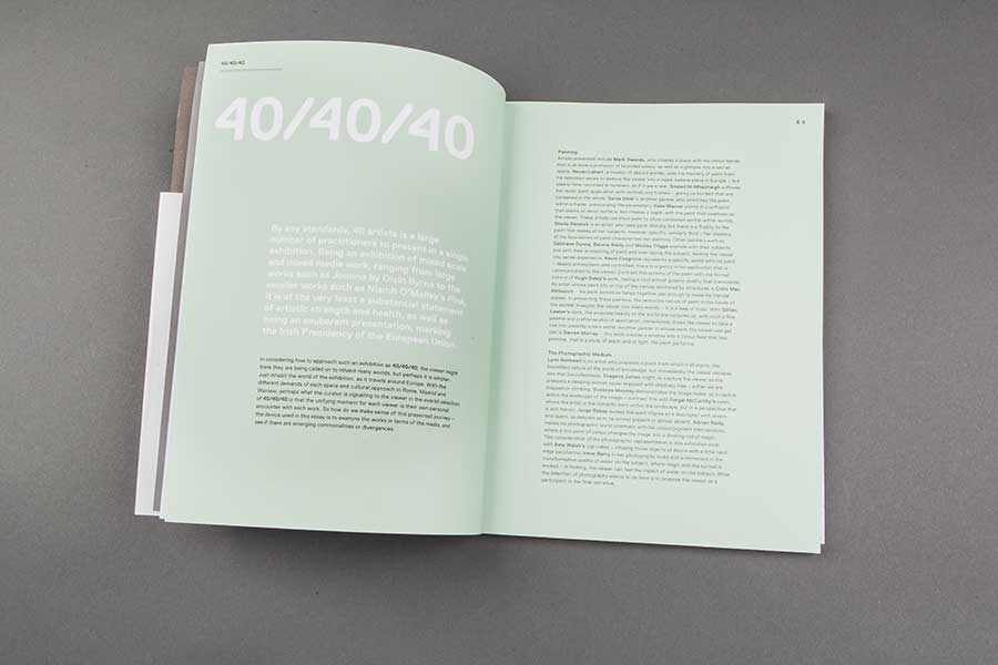 40/40/40 was an exhibition of contemporary art works from the Irish State Art Collection organised by the Department of Foreign Affairs and Trade and the Office of Public Works (OPW) of Ireland. These works were created by 40 artists under the age of forty, who are Irish or have chosen to base themselves in Ireland. It was in celebration of the 40th Anniversary of Ireland as a Member State of the EU.