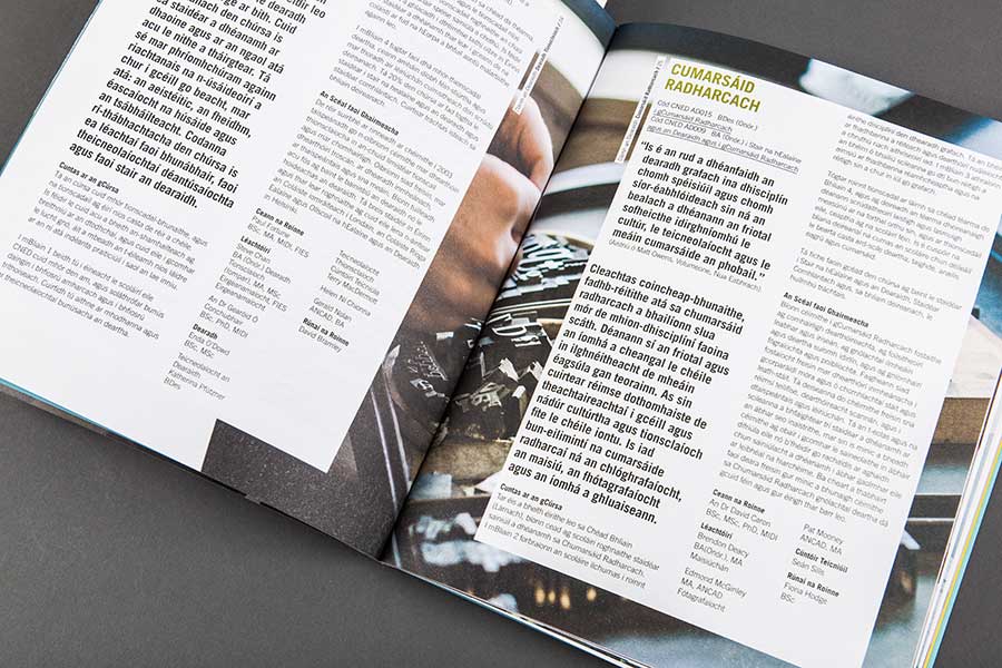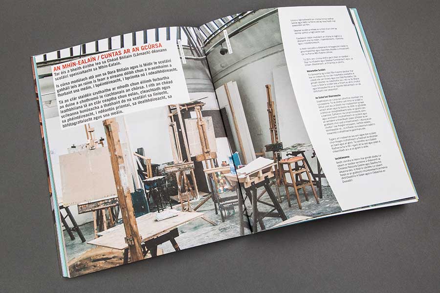 For a number of years, Red dog was commissioned to produce the undergraduate prospectus in both English and Irish for the National College of Art and design.